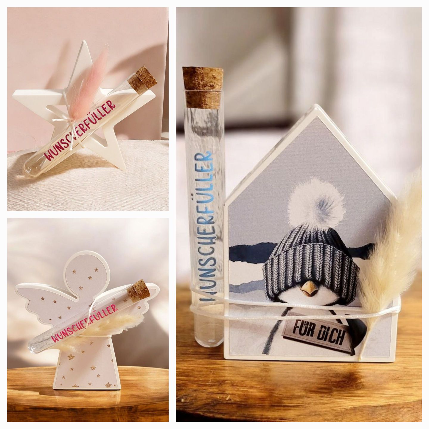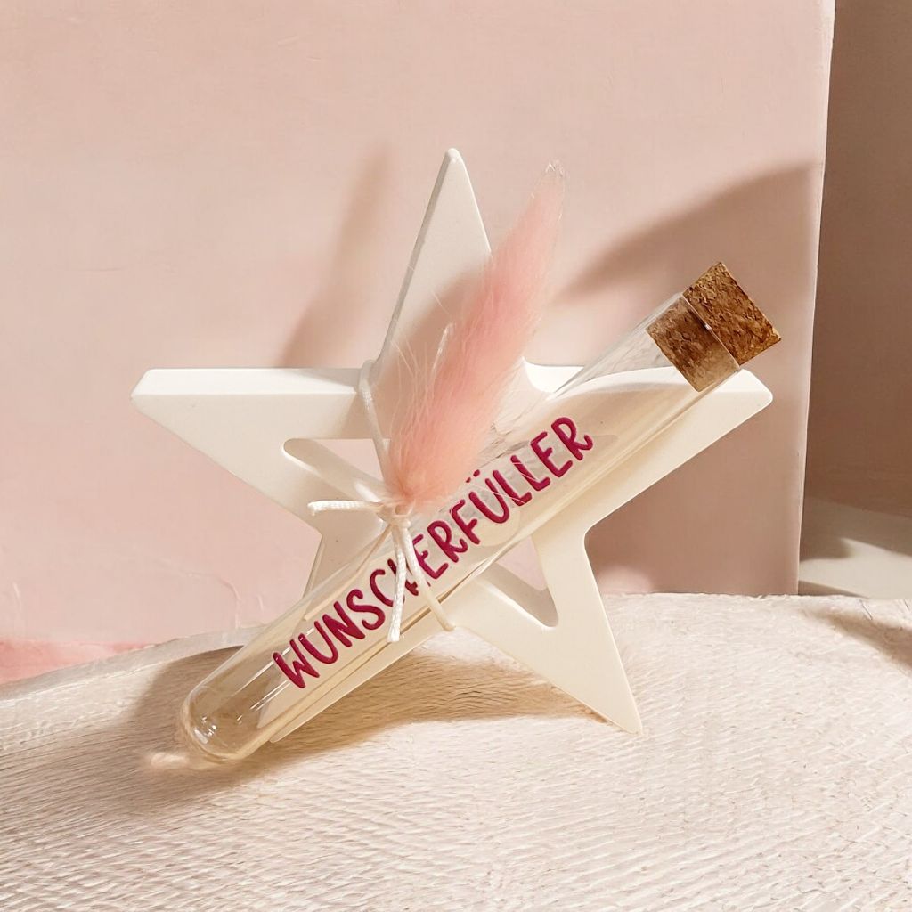 Wunderschöne Geschenkideen - Wunscherfüller mit Reagenzglas für etwas Geld, im Set mit einem der 3 Elemente erhältlich.
