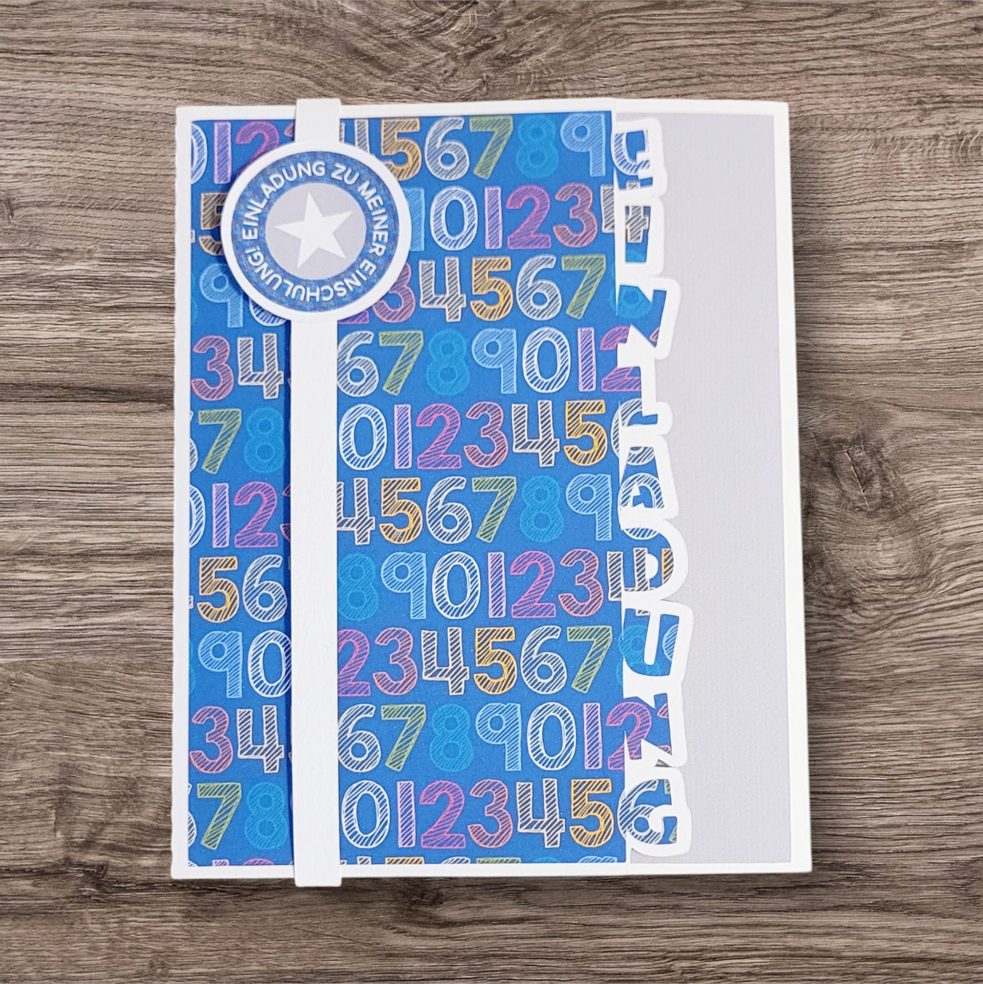 Die Einladungskarte ist aufklappbar und hat u.a. genug Platz für eventuell wichtige Informationen zum Ablauf der Einschulung. Sie ist aus stabilem Cardstock liebevoll angefertigt.