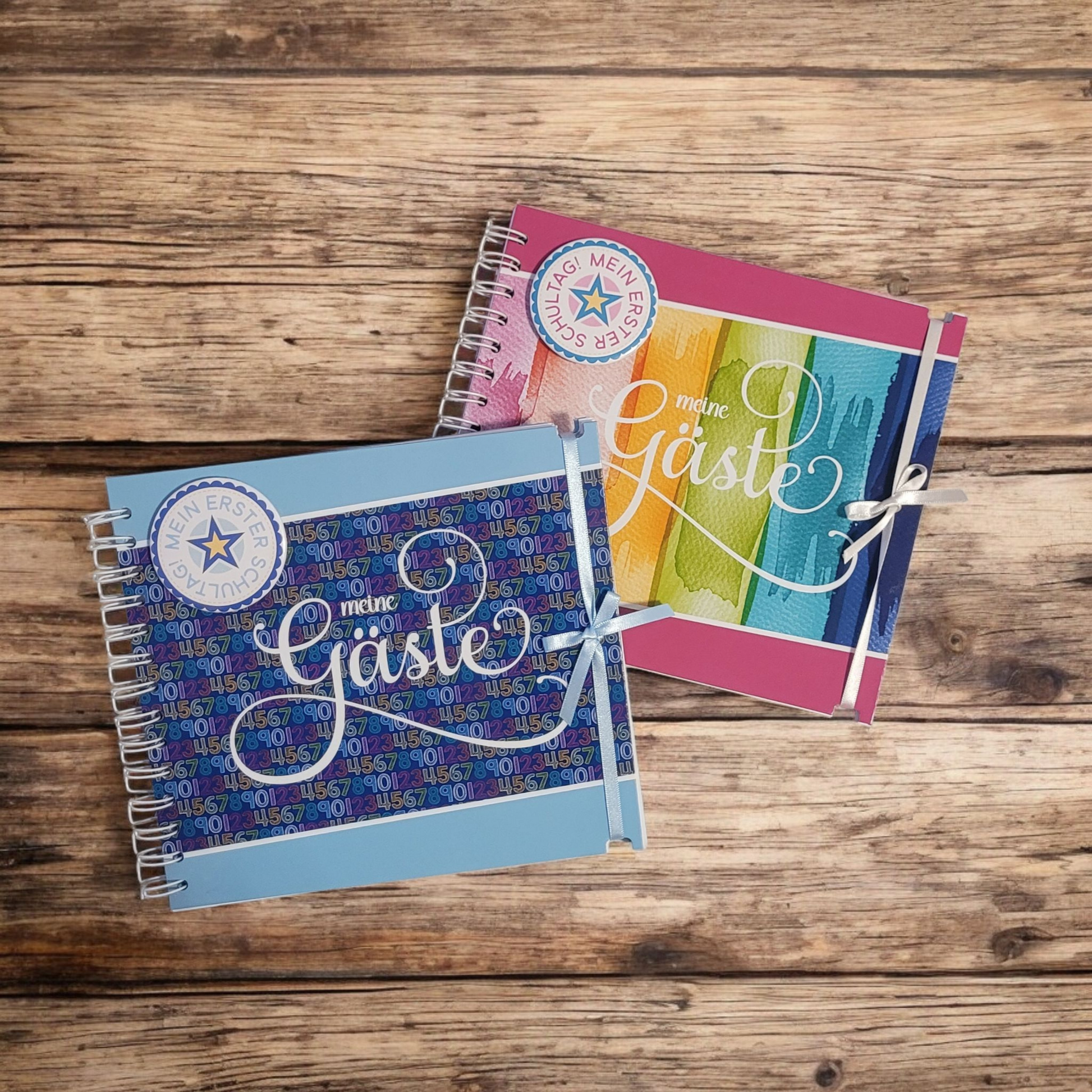 Endlich Schulkind - die Einschulung in der Schule ist vorüber. Es wird anschließend mit Familie und Freunden gefeiert. Damit die Gäste dem Schulkind Wünsche mit auf den neuen Weg geben können, eignen sich diese Gästebücher perfekt.