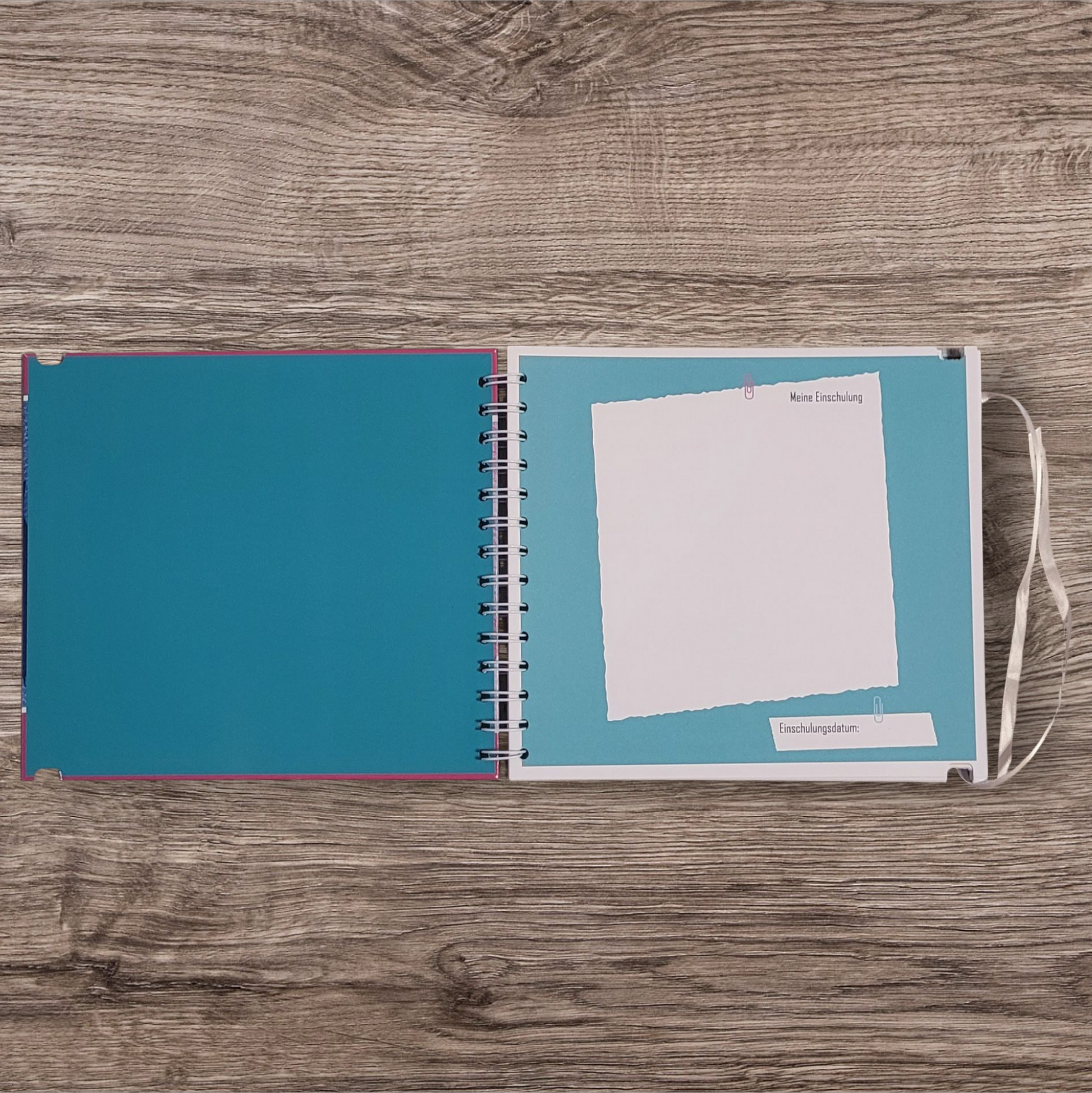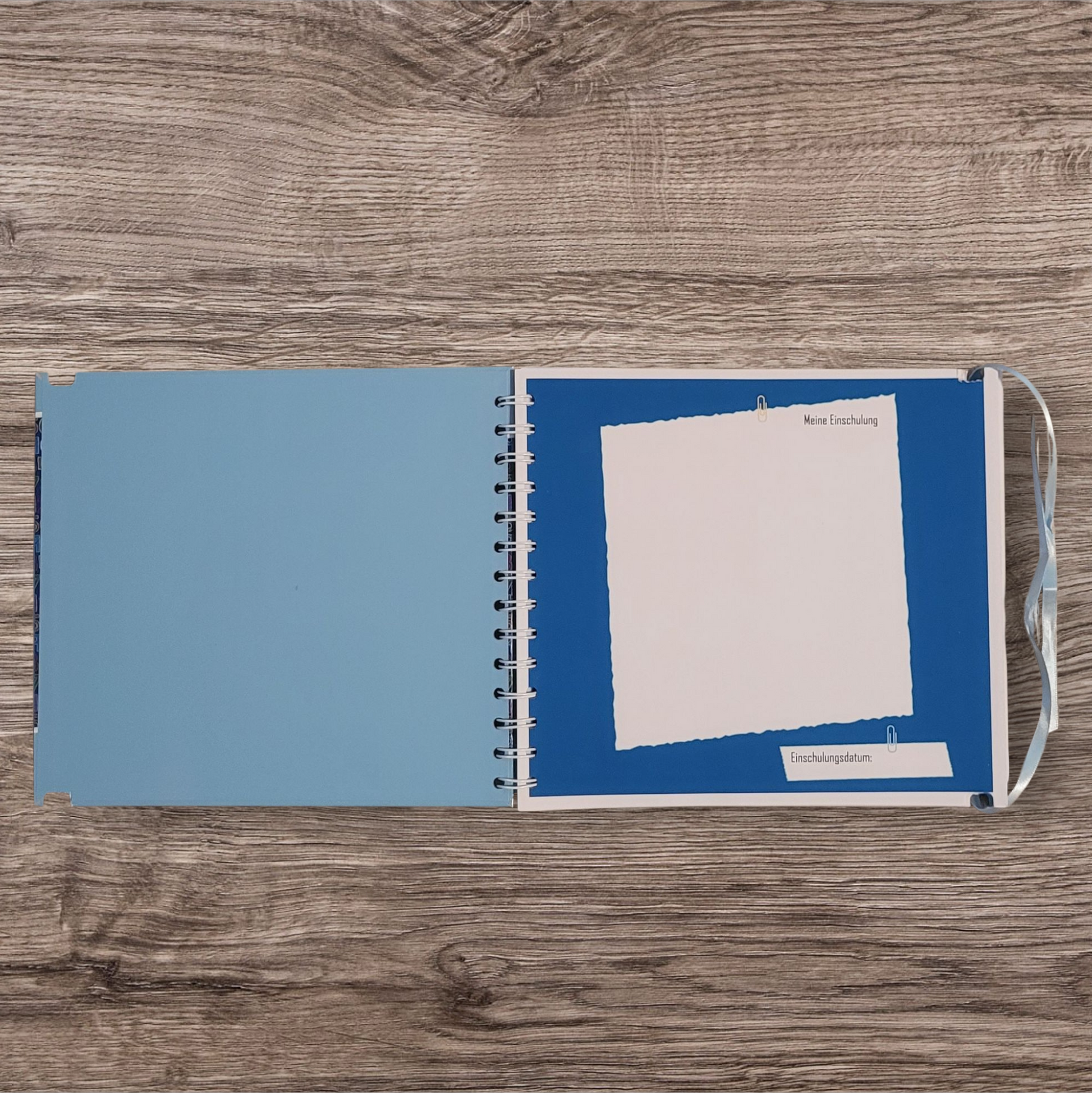 Scrapbook mit Ringbuchspirale, Satinband zum binden sowie Metall Button
