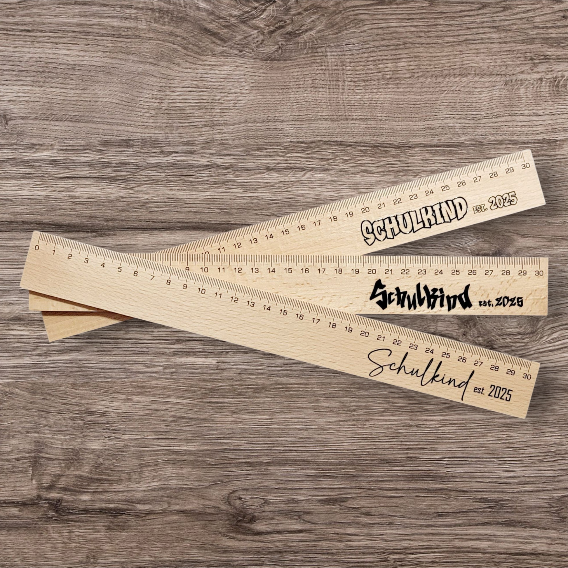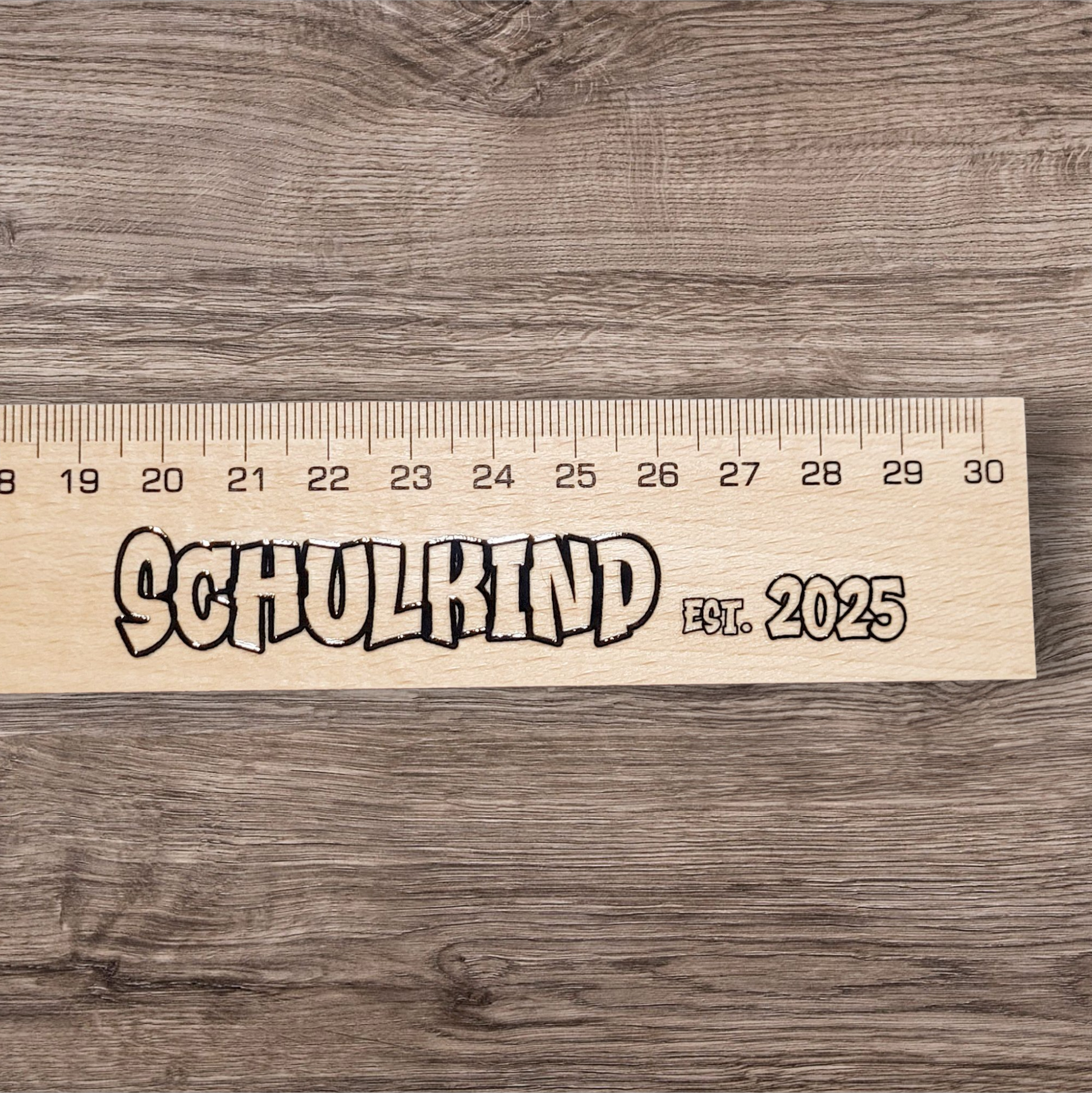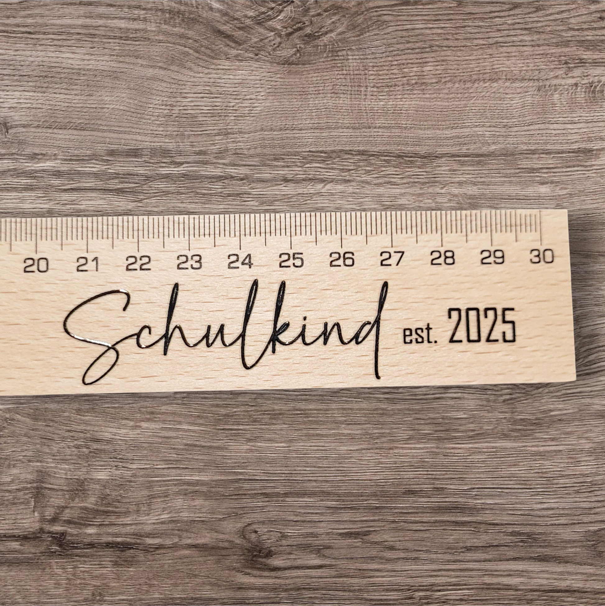 Jedes hochwertige Holzlineal, welches eine Messskala von 30cm hat, wird mit dem Schriftzug Schulkind sowie dem aktuellen Einschulungsjahr versehen und ist ein tolles Geschenk zur Einschulung. Sollte das Jahr abweichen, teile mir das bitte mit.