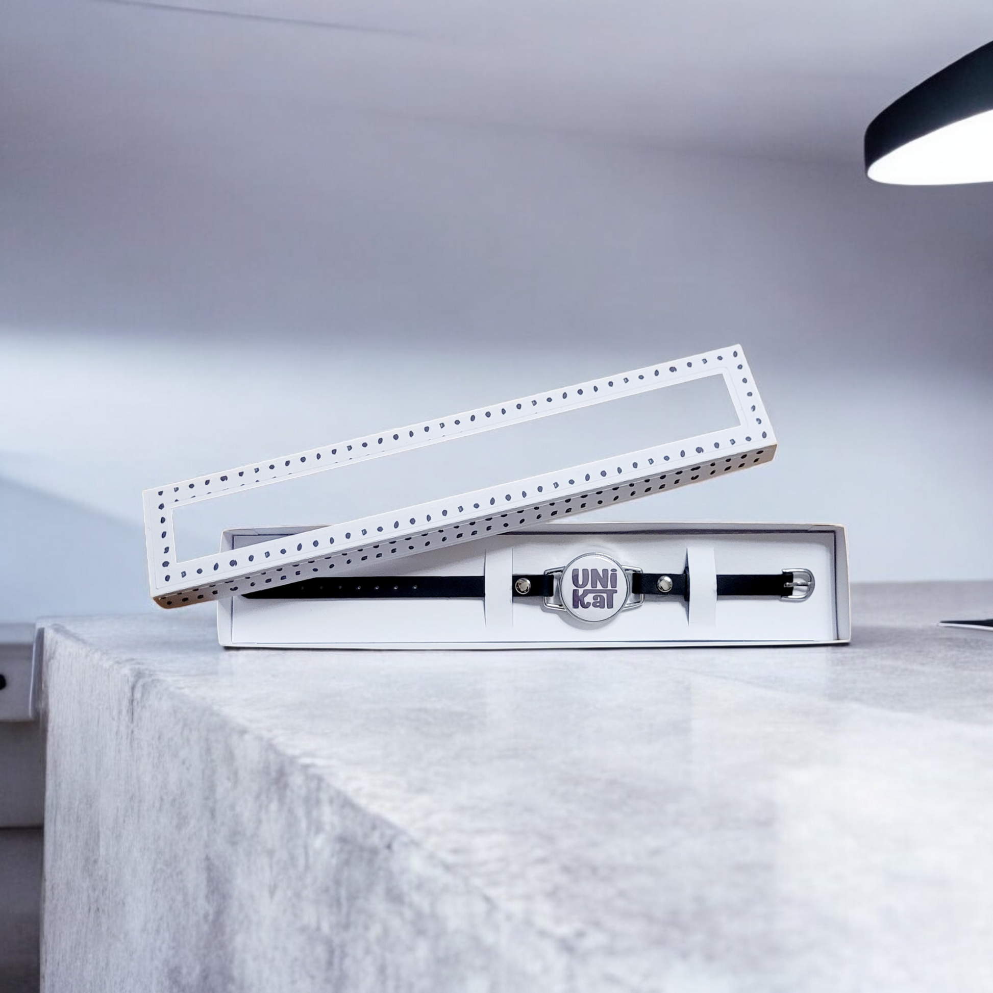 Das schmale Armband ist in schwarz erhältlich und aus echtem Leder mit einer Armbandlänge von 21,6cm. Die Fassung ist aus Zinklegierung und somit nickelfrei. Mit den vorhandenen Löchern lässt sich das Armband bis zu einem Handgelenk Umfang von 18cm tragen. Der Button lässt sich einfach auswechseln.